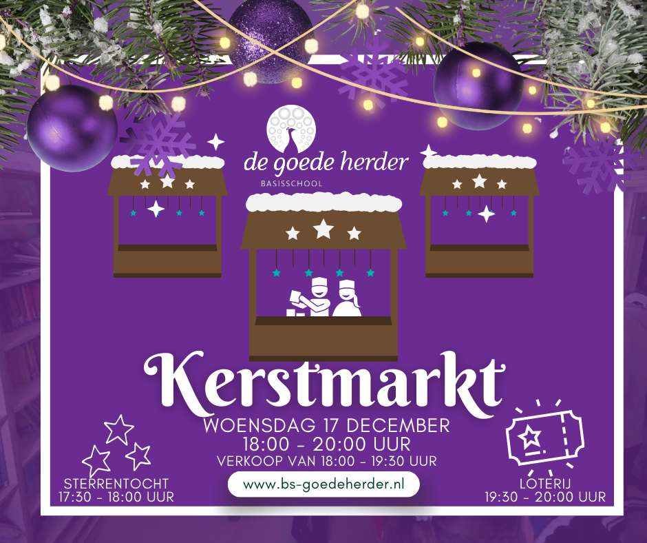 Aanstaande woendag is het weer tijd voor onze jaarlijkse sterrentocht en kerstmarkt op school. Kom na het wandelen van de sterrentocht gezellig langs voor een mooi kunstwerkje, hapje of drankje. Beproef je geluk tijdens de loterij en maak kans op leuke prijzen, beschikbaar gesteld door onze vele sponsoren.